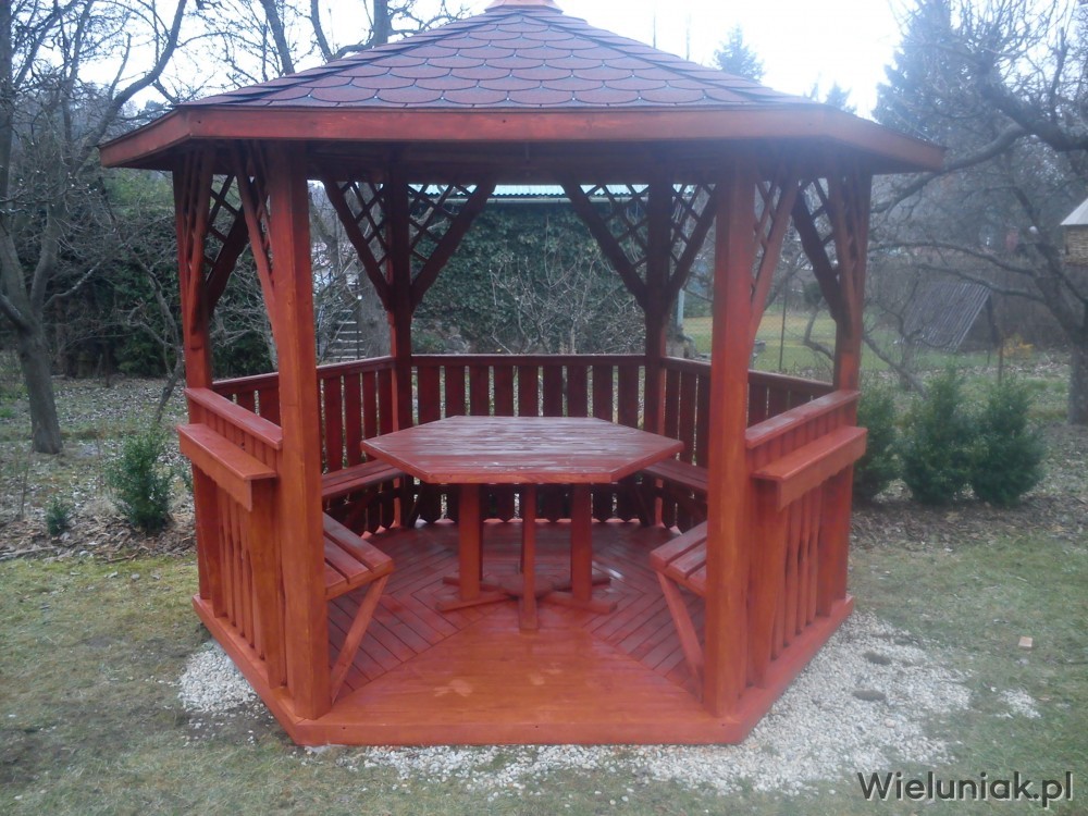 - 5 ławek mocowanych do altany,