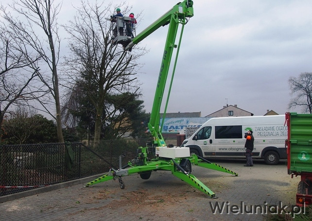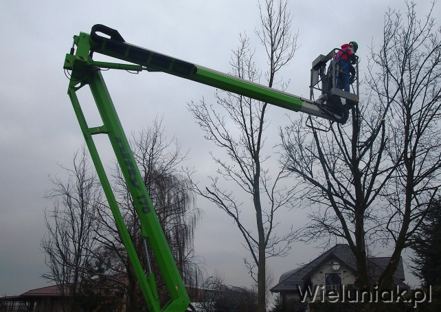 Wycinkę drzew oraz podcinanie gałęzi prowadzimy z użyciem podnośnika koszowego - zwyżki o wys. roboczej 21 m, wysięgu bocznym 12 m oraz udźwigu 225 kg/2 os. + 65 kg.