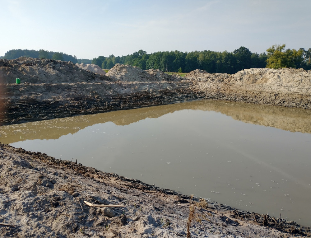 Wykonuje usługi robót ziemnych: kopanie stawów, czyszczenie, odmulanie, pogłębianie, formowanie skarp, wałów.
