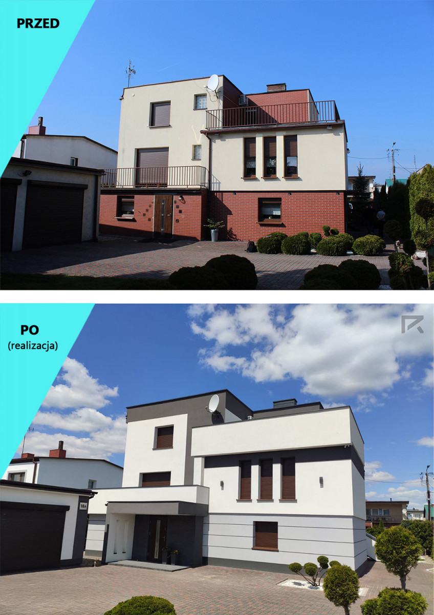 projekt elewacji domu Sieradz | wizualizacja elewacji 3D | nowoczesny projekt elewacji | projekt elewacji z doborem materiałów | projekt elewacji budynku mieszkalnego | wizualizacja elewacji na zdjęciu | elewacja dom jednorodzinny projekt