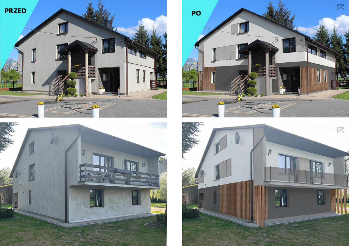 - Wizualizacje na podstawie aktualnych zdjęć budynku (obróbka fotografii).