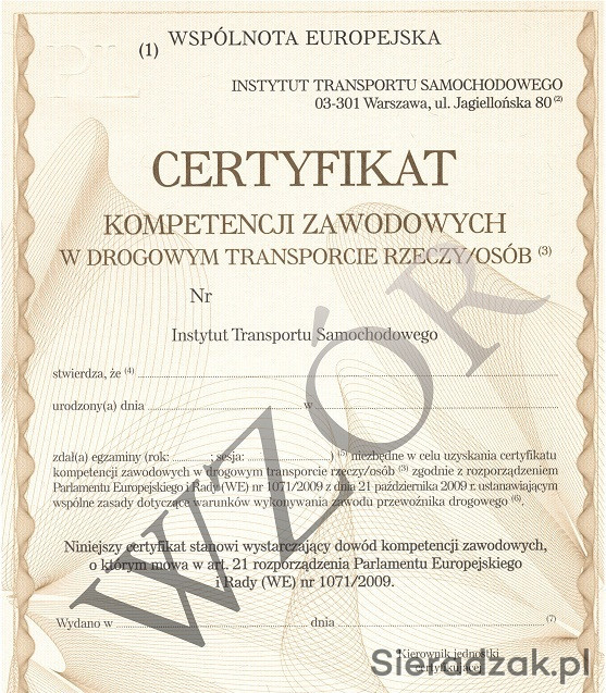 Użyczę Certyfikat w transporcie drogowym rzeczy. Krajowy i międzynarodowy. Oferuję pomoc przy składaniu dokumentów.
