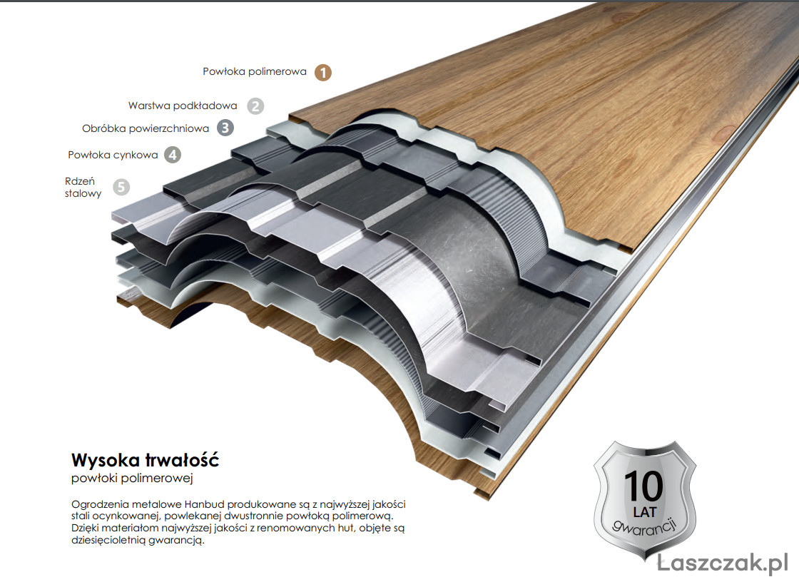 Sztachety metalowe to doskonała alternatywa dla sztachet drewnianych, ponieważ są wyjątkowo trwałe i wytrzymałe. Nie wymagają corocznej konserwacji, produkowane są z wysokiej jakości stali ocynkowanej powlekanej obustronnie powłoką poliestrową. Sztachety wyróżnia innowacyjny, nowoczesny kształt, którego doskonałe profilowanie zapewnia wyjątkową sztywność. Gwarantuje to odporność na wiatr i inne czynniki mechaniczne.