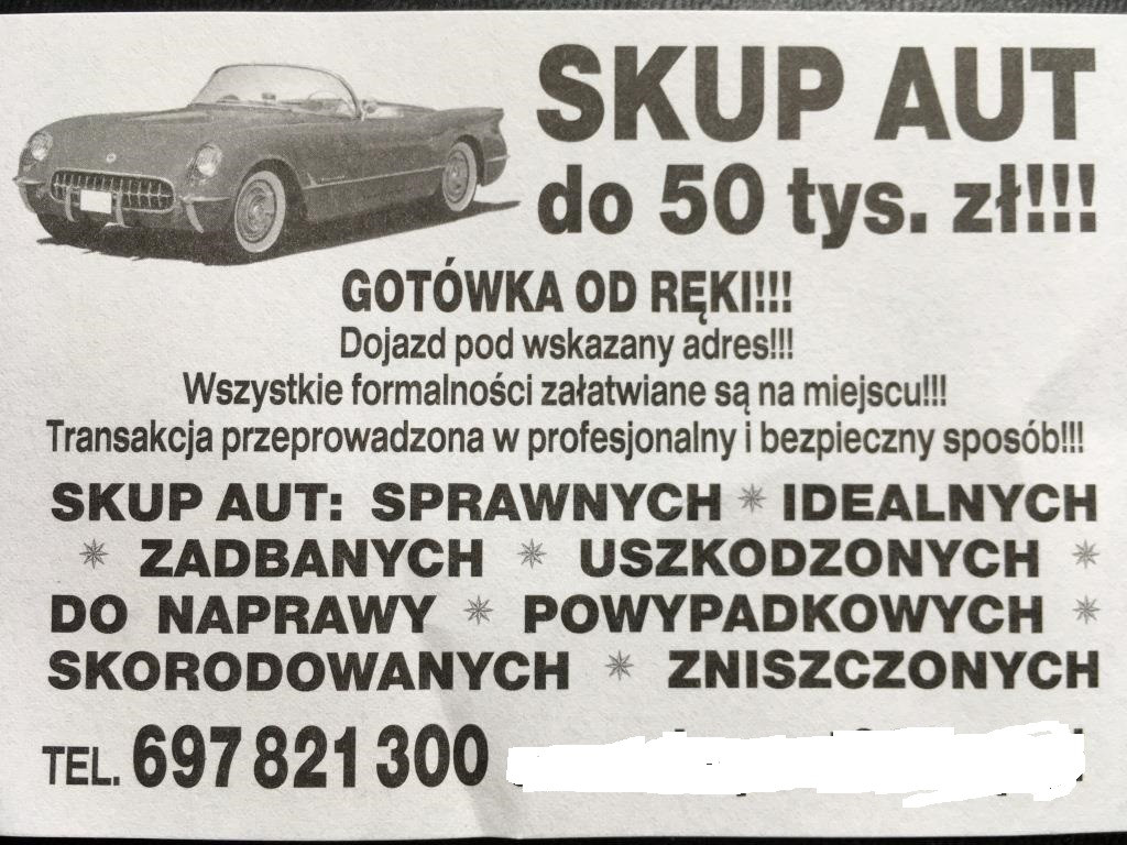 KUPIĘ AUTA NA CZĘŚCI : USZKODZONE ,ZNISZCZONE ,POWYPADKOWE, BEZ OPŁAT , BEZ PRZEGLĄDU , SKORODOWANE , NA CZĘSCI . ODBIERAMY WŁASNYM TRANSPORTEM , KONKURENCYJNE CENY !!! ZADZWOŃ I PRZEKONAJ SIĘ SAM