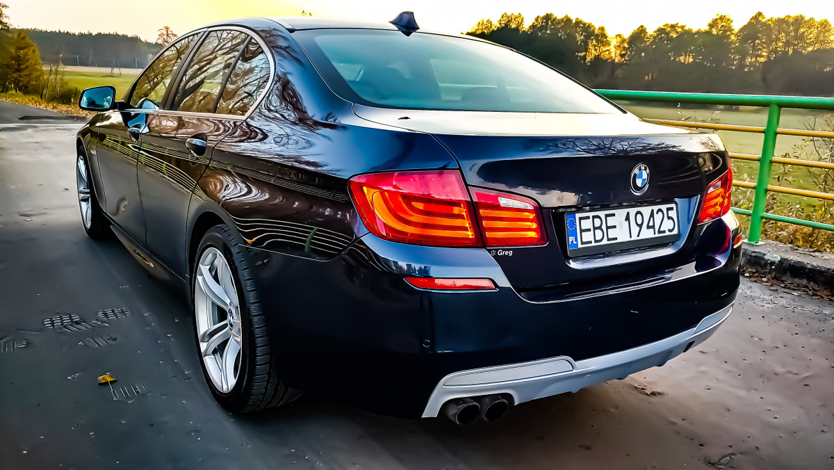 Mam do sprzedania BMW Seria 5 F10 w stylizacji M-Pakiet+AERO, z niezawodnym silnikiem benzynowym 2.0 o mocy 184 KM i automatyczną skrzynią biegów ZF (8 biegów). Auto bezwypadkowe, z oryginalnym przebiegiem 74 100 km, zadbane, garażowane, użytkowane przez kobietę (pierwsza właścicielka w Polsce od prawie 5 lat).