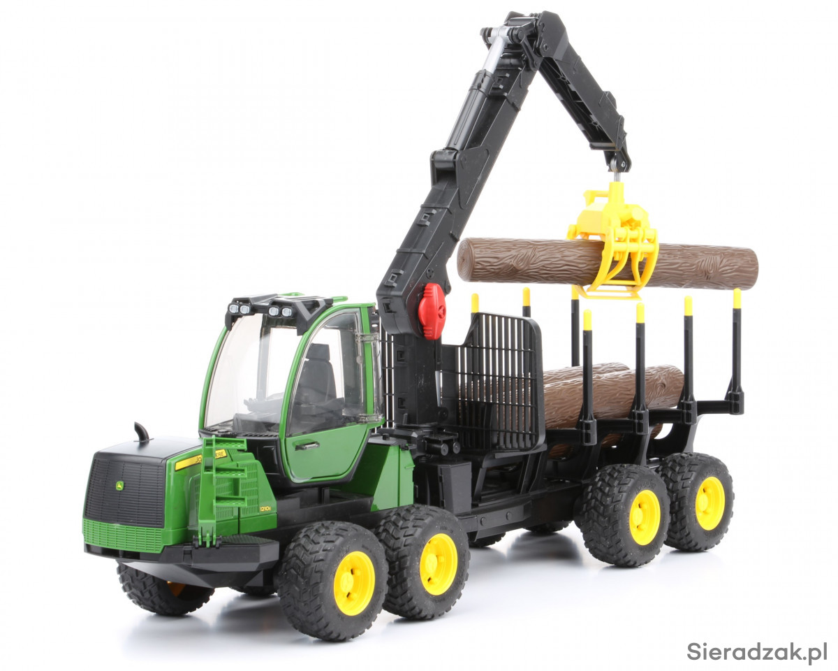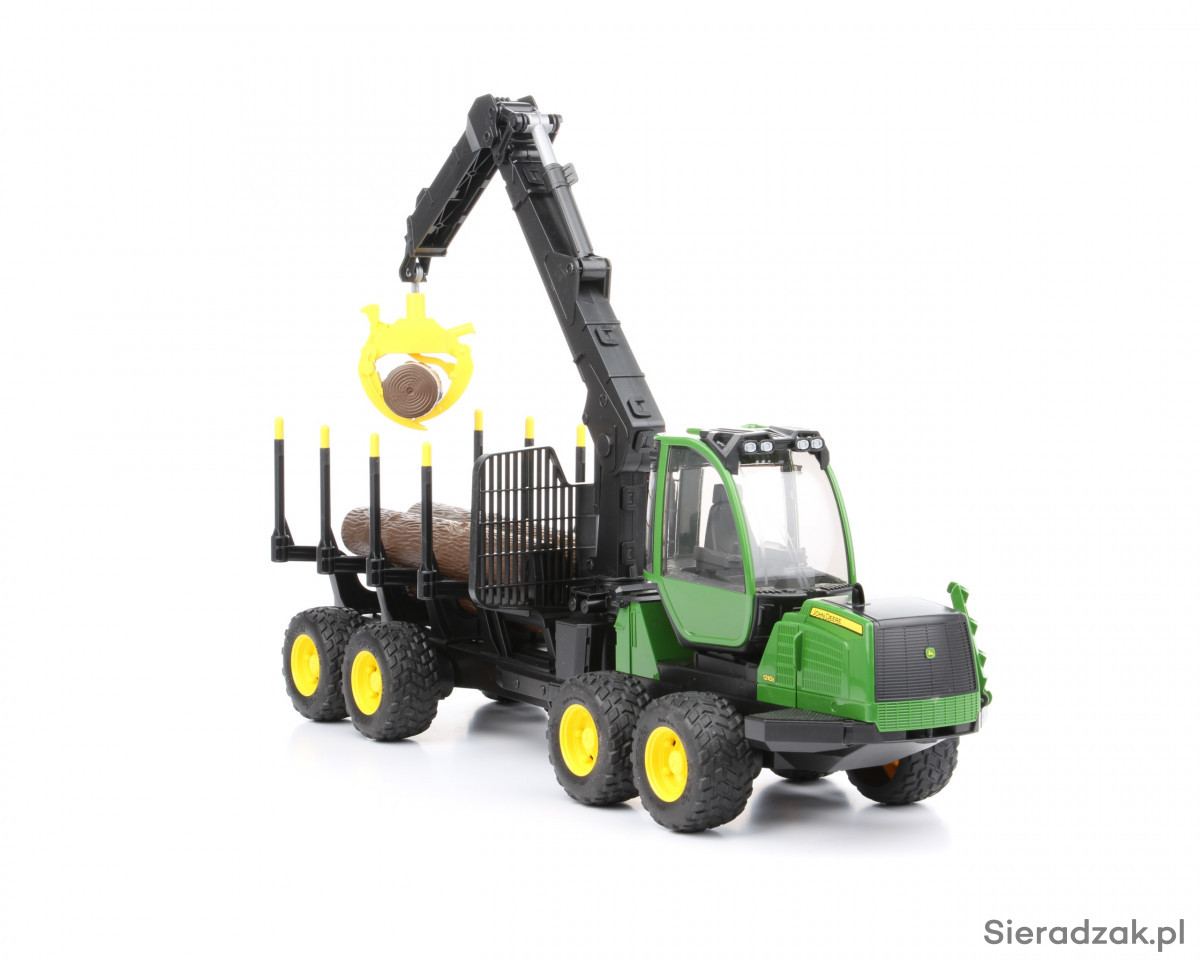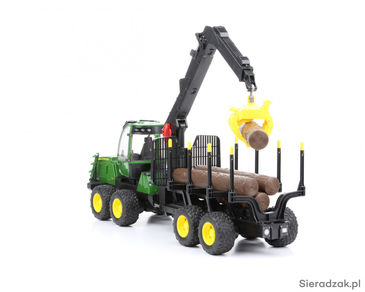 Precyzyjnie odwzorowane zabawki Bruder to wiele modeli różnych typów pojazdów, w tym modele nowoczesnych maszyn leśnych. Na liście tego typu zabawek znaleźć można m.in. pojazd leśny Forwarder John Deere, czyli sprzęt wykorzystywany do załadunku, transportu i rozładunku pni drzew. Prezentowana zabawka składa się z ciągnika wyposażonego w przeszkoloną, obrotową kabinę kierowcy z otwieranymi drzwiami i unoszoną maską silnika, a także ze zintegrowanej z ciągnikiem przyczepy, z obrotowym żurawiem wyposażonym w ruchomy chwytak do przenoszenia pni drzew, które wchodzą w skład całego zestawu (4 sztuki). Pojazd leśny Forwarder John Deere posiada specjalne terenowe zawieszenie i duże koła z miękkim gumowym bieżnikiem. Tylny sprzęg pozwala doczepić do pojazdu inne zabawki Bruder, na przykład dodatkową przyczepę.
