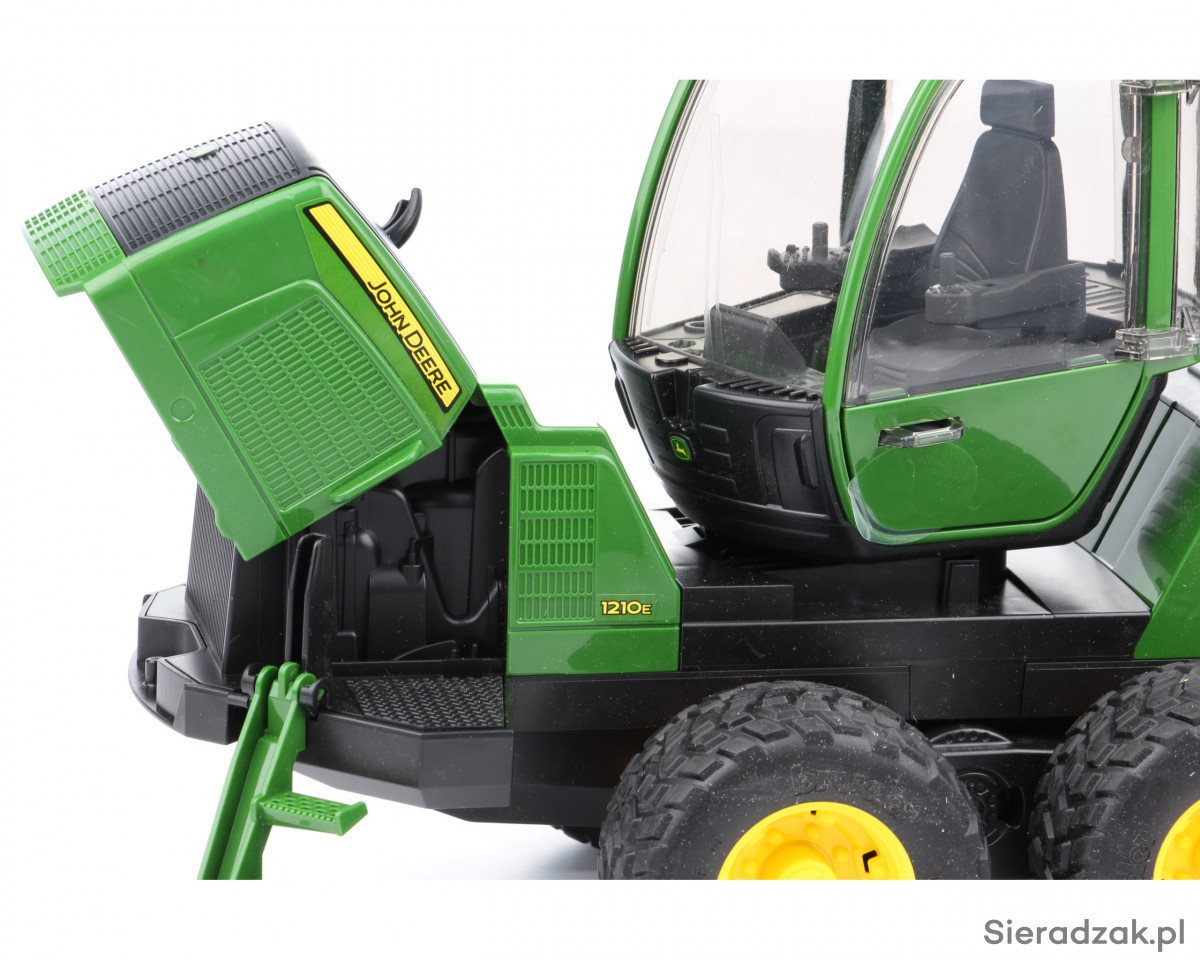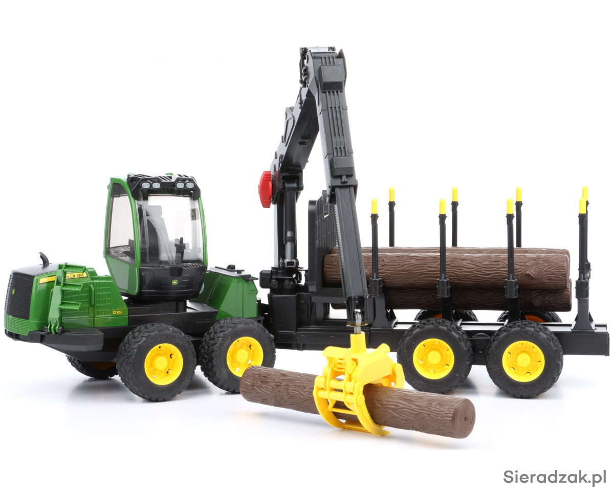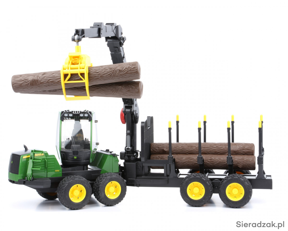 Precyzyjnie odwzorowane zabawki Bruder to wiele modeli różnych typów pojazdów, w tym modele nowoczesnych maszyn leśnych. Na liście tego typu zabawek znaleźć można m.in. pojazd leśny Forwarder John Deere, czyli sprzęt wykorzystywany do załadunku, transportu i rozładunku pni drzew. Prezentowana zabawka składa się z ciągnika wyposażonego w przeszkoloną, obrotową kabinę kierowcy z otwieranymi drzwiami i unoszoną maską silnika, a także ze zintegrowanej z ciągnikiem przyczepy, z obrotowym żurawiem wyposażonym w ruchomy chwytak do przenoszenia pni drzew, które wchodzą w skład całego zestawu (4 sztuki). Pojazd leśny Forwarder John Deere posiada specjalne terenowe zawieszenie i duże koła z miękkim gumowym bieżnikiem. Tylny sprzęg pozwala doczepić do pojazdu inne zabawki Bruder, na przykład dodatkową przyczepę.