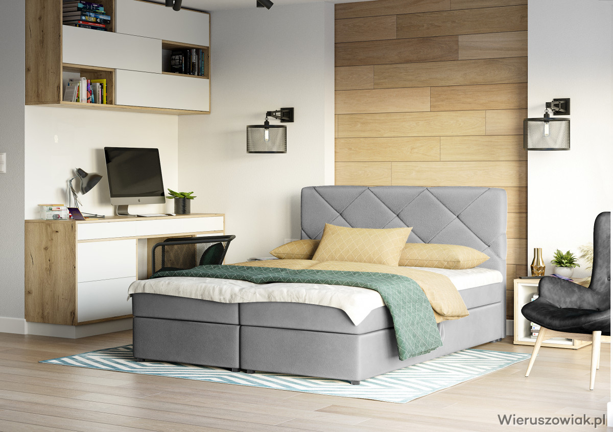 Łóżko kontynentalne KROSS to elegancka i funkcjonalna opcja, łącząca nowoczesny design z praktycznością. Wyposażone w materac typu BONELL, które zapewnia solidne wsparcie i komfort snu dzięki sprężynom bonellowym, jest doskonałym rozwiązaniem dla osób szukających wygodnego odpoczynku. Materac idealnie dopasowuje się do kształtu ciała, gwarantując równomierne rozłożenie ciężaru, co wpływa na jakość snu.