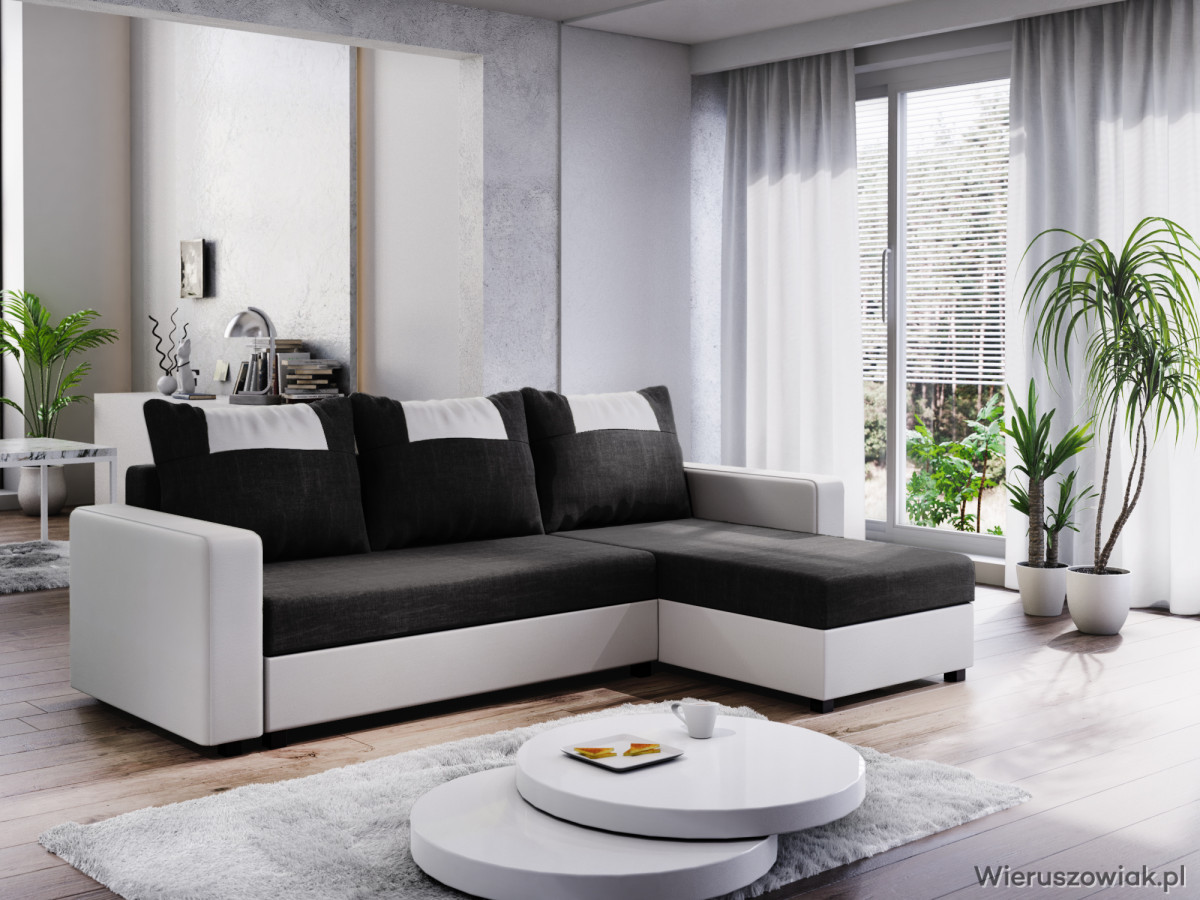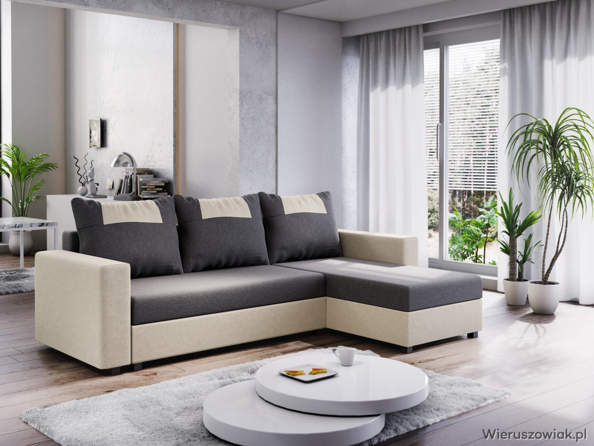 Dzięki funkcji spania, narożnik świetnie sprawdzi się jako dodatkowe miejsce noclegowe dla gości. Wbudowany pojemnik na pościel umożliwia praktyczne przechowywanie, pomagając utrzymać porządek w pomieszczeniu.