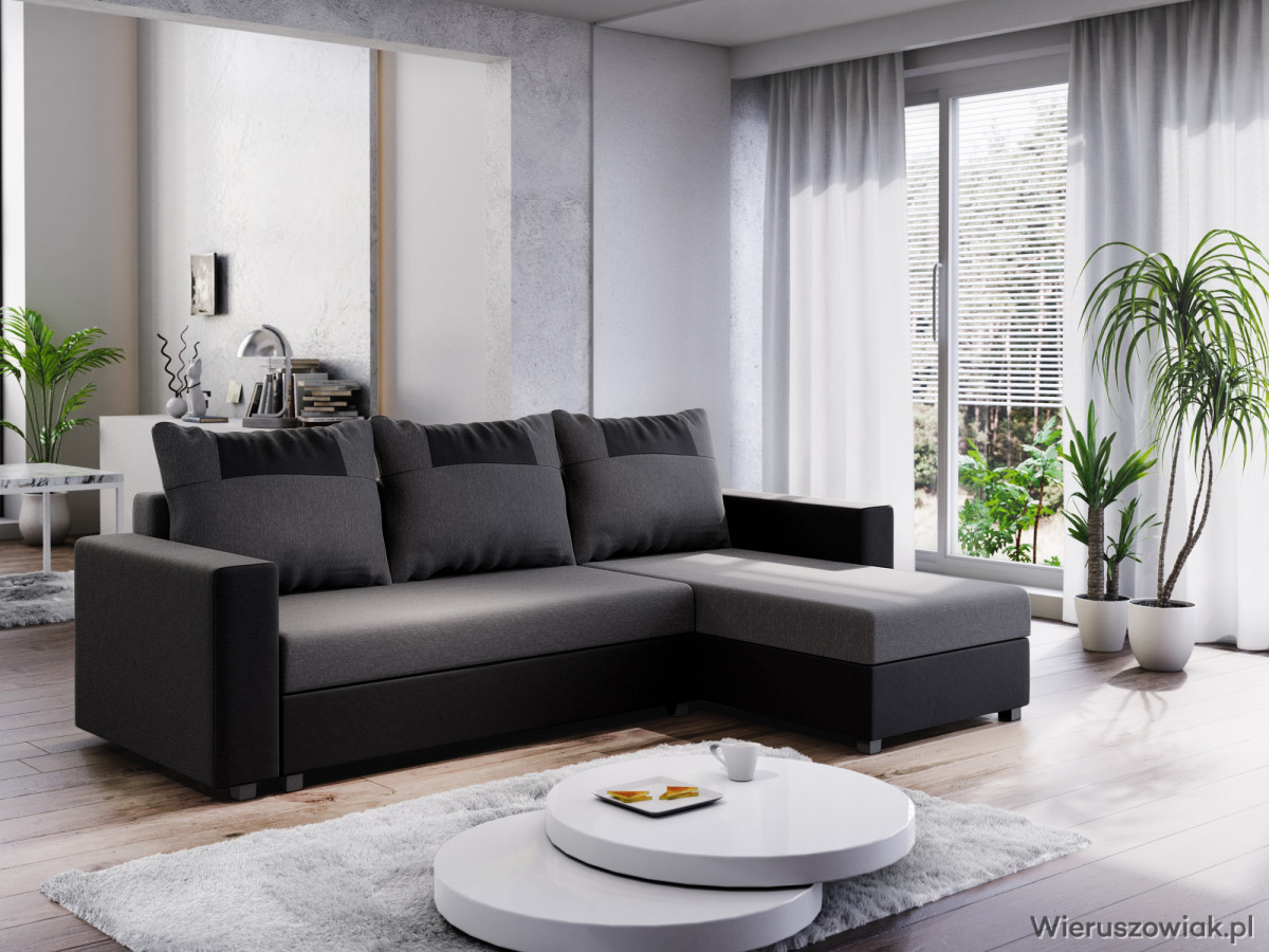 Narożnik dostępny jest w różnych kolorach i tkaninach, co pozwala na dopasowanie go do indywidualnych potrzeb i stylu wnętrza. Solidna konstrukcja oraz wysokiej jakości materiały gwarantują długotrwałe użytkowanie.