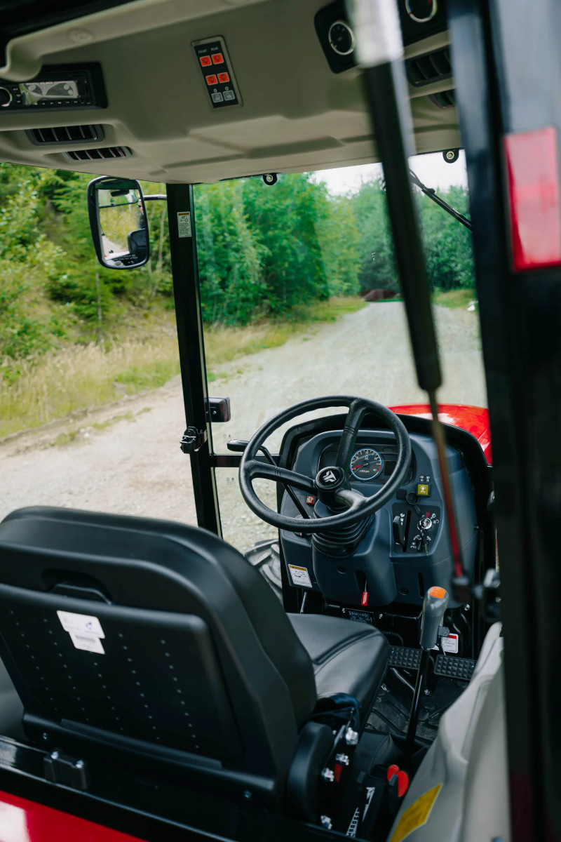 - Komfortowy mechaniczny fotel operatora z pasami bezpieczeństwa