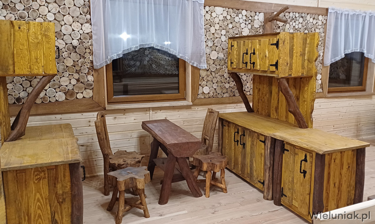 - oświetlenia; żyrandol z bali okrągłych = 3 klinkiety ,
