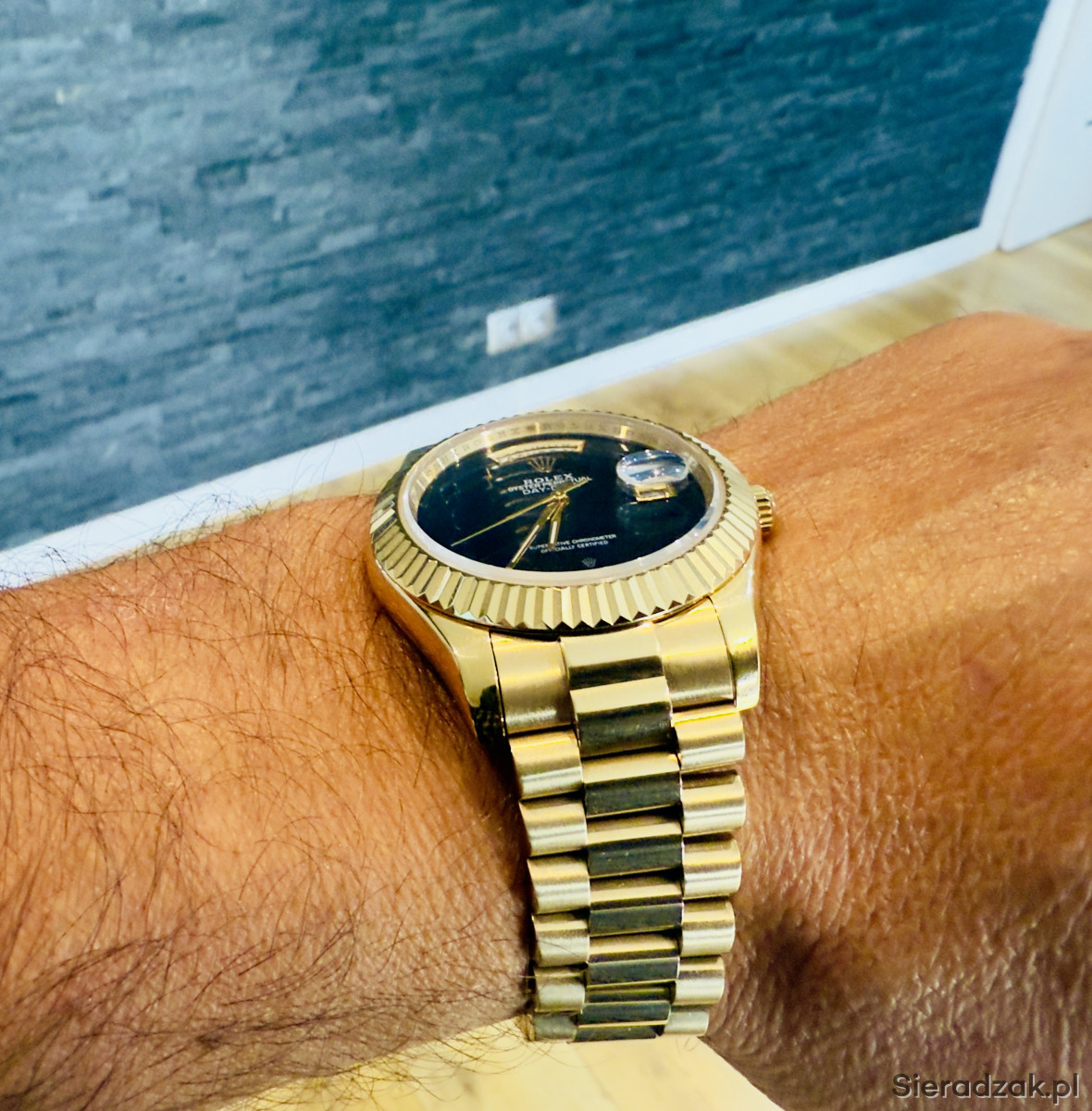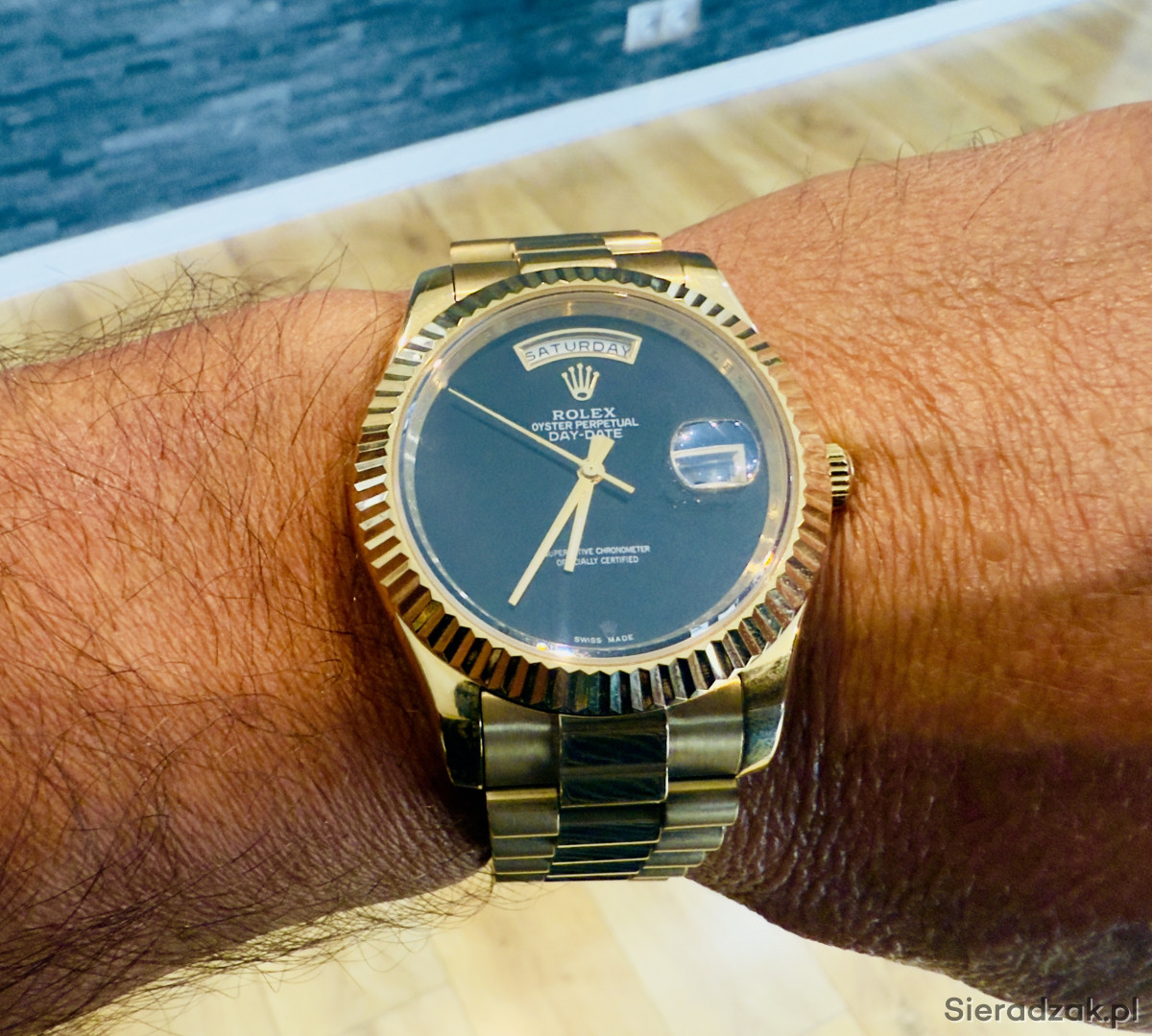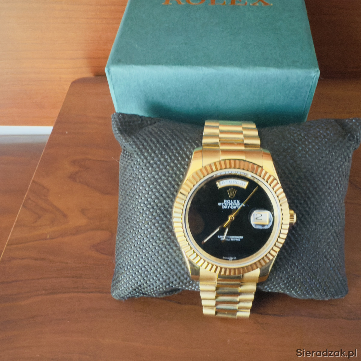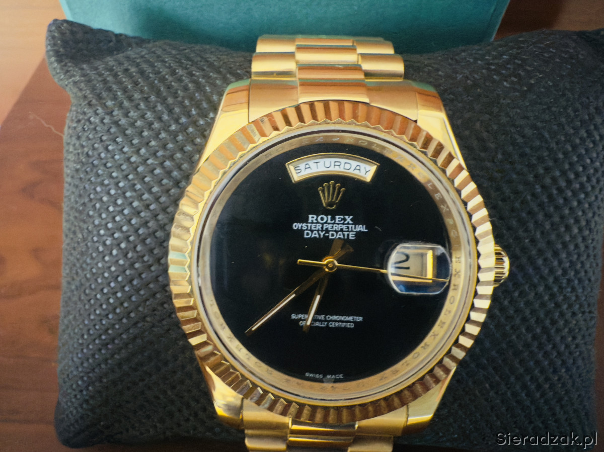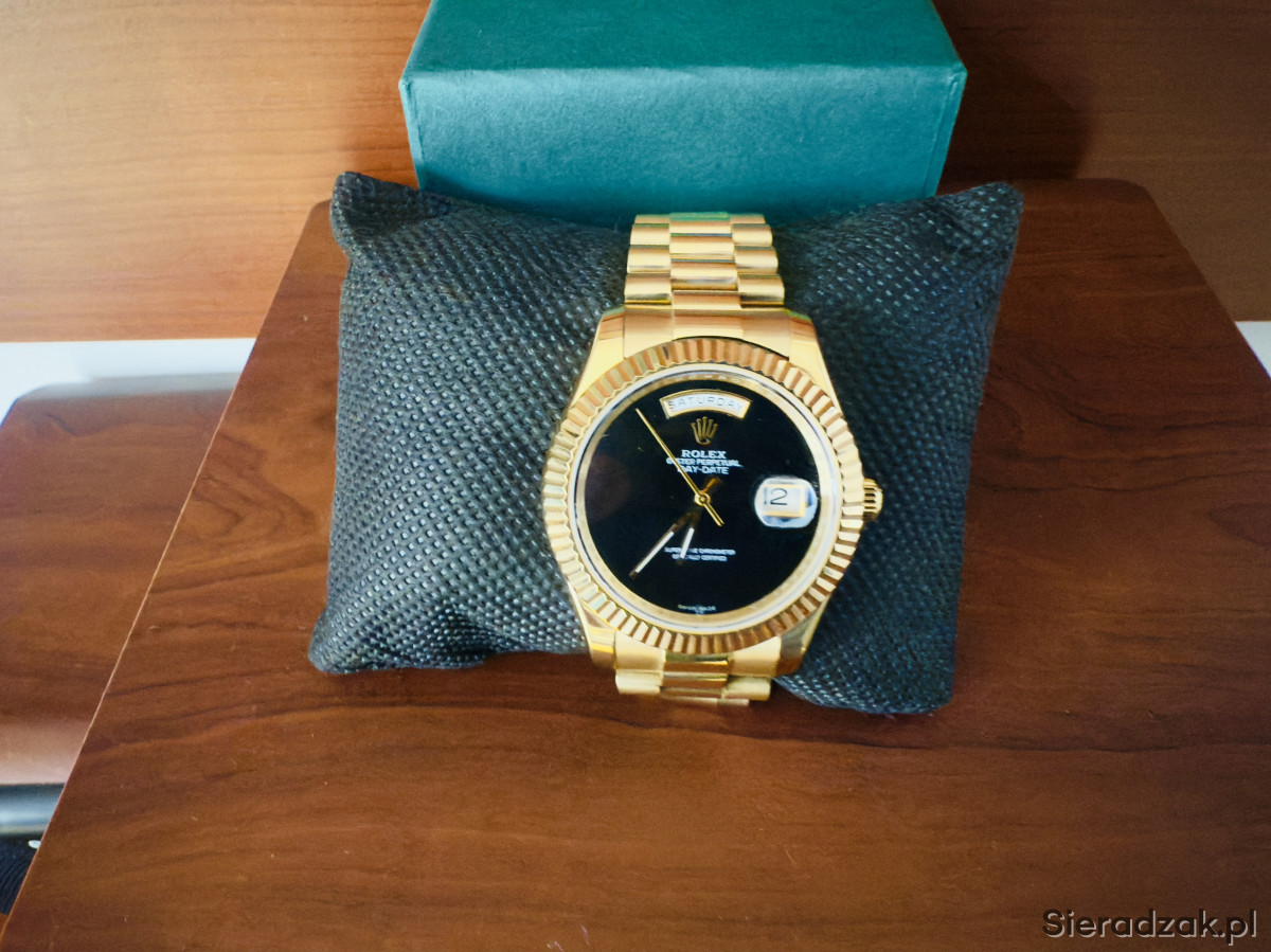 Zegarek posiada rzadką tarcze z onyksu, bransolete prezydencką . Onyx Day-Date to jeden z najbardziej poszukiwanych zegarków z tarcza z kamienia, jakie kiedykolwiek wyprodukowata firma Rolex. Automatic szkło szafirowe , nowy . Bardzo rzadki model trudno dostepny , na żywo prezentuje się niesamowicie sza Zd wola