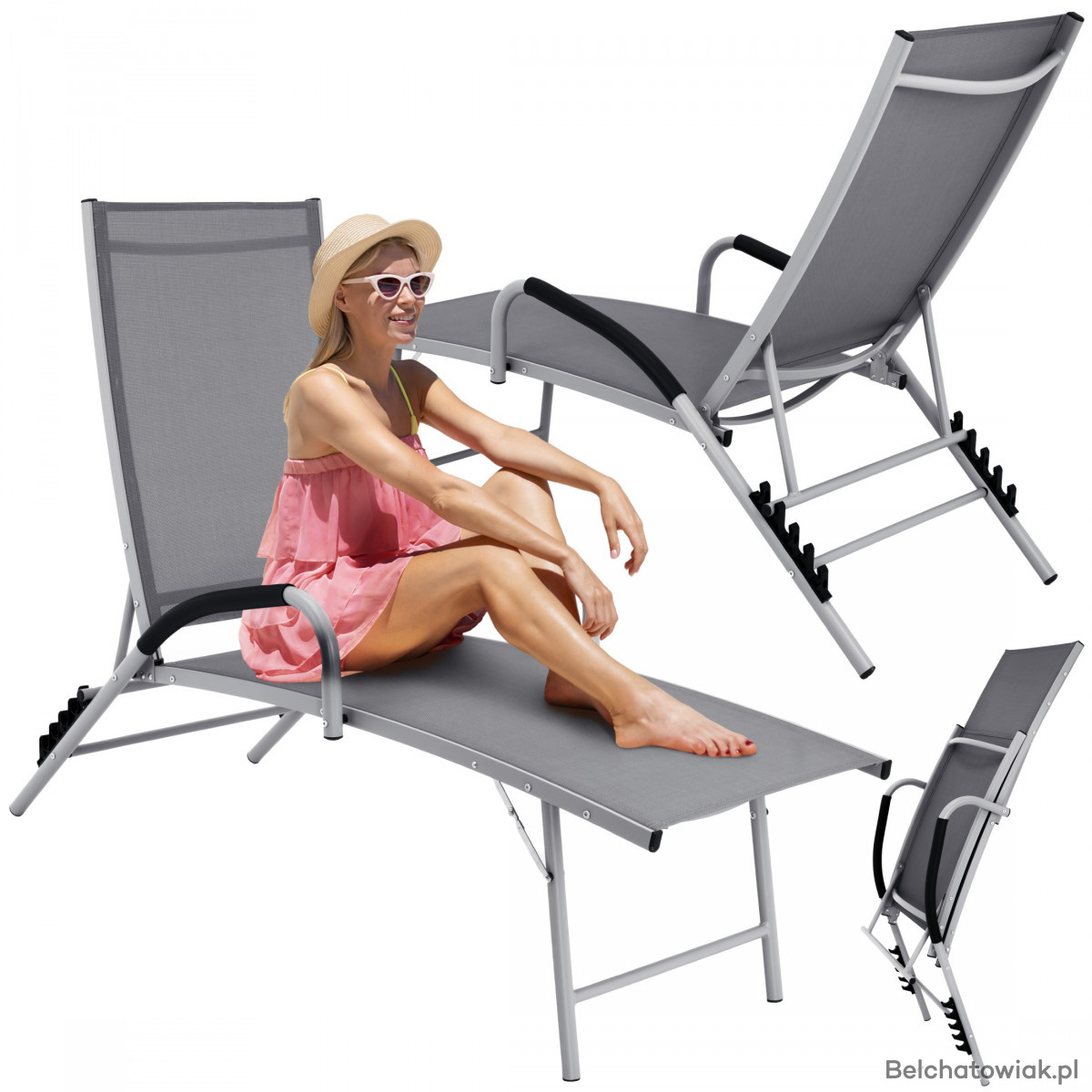 SKŁADANY LEŻAK OGRODOWY Z ALUMINIUM – REGULOWANE OPARCIE, FOTEL PLAŻOWY 58157 – KOWALCZYK MEBLE