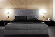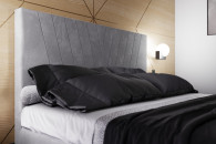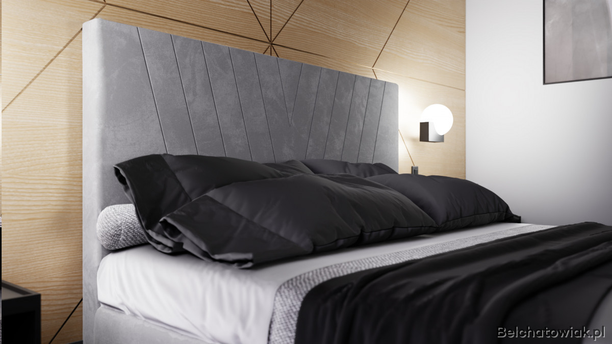 Łóżko ADRA zachwyca eleganckim charakterem i wyjątkowym designem. Wezgłowie tapicerowane we wzór litery V podkreśla nowoczesny styl, a jednocześnie nadaje sypialni przytulnego klimatu.