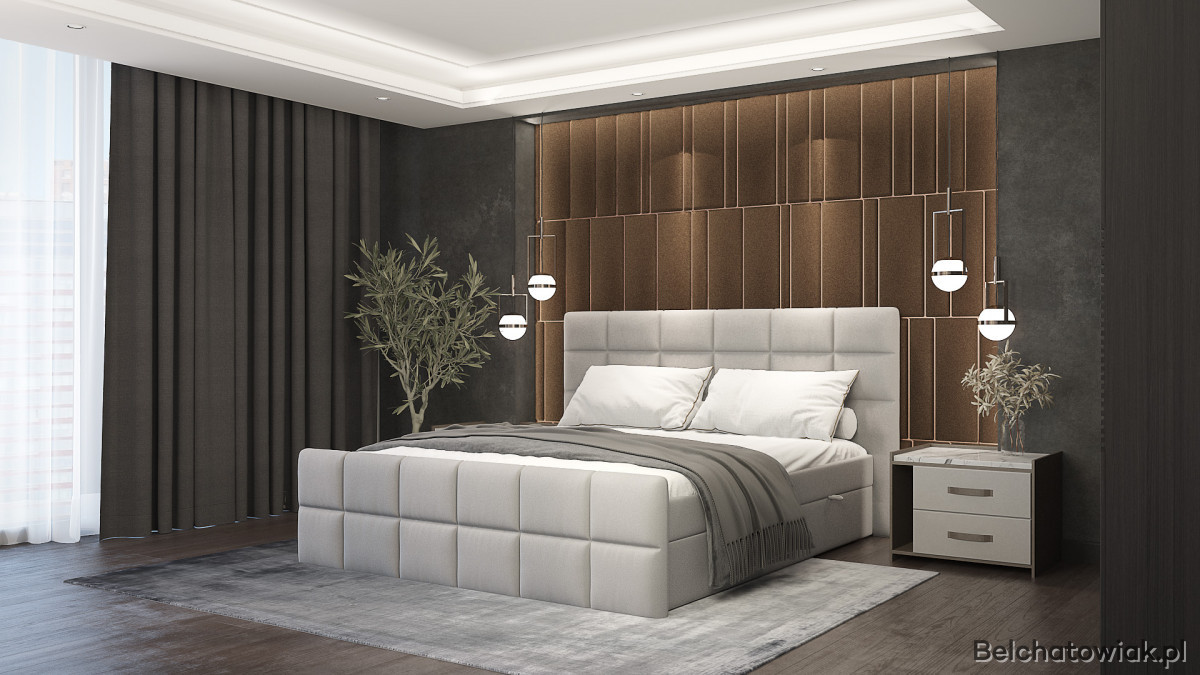 Eleganckie pikowanie – ozdobne, głębokie przeszycia w kratkę podkreślają luksusowy wygląd i dodają sypialni wyrafinowanego charakteru.