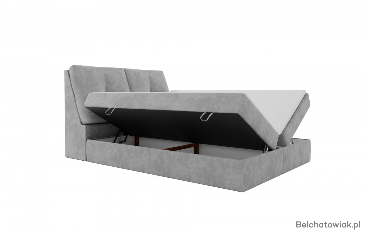 Łóżko wyposażono w materace bonellowe, które gwarantują zdrowy i komfortowy sen. Pochylone wezgłowie zapewnia wygodne podparcie pleców – idealne dla osób lubiących czytać lub odpoczywać przed snem.