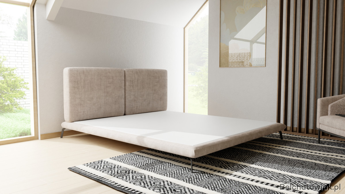 Mimo oszczędnej formy, łóżko DOZE zostało wyposażone w miękki zagłówek, który zwiększa komfort użytkowania. Całość dopełniają stalowe nóżki, nadające meblowi nowoczesny i lekki charakter.