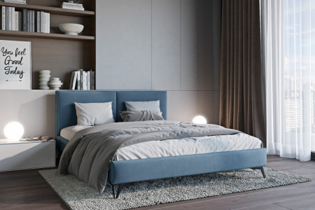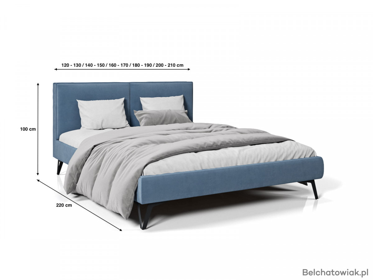 Nowoczesny charakter łóżka podkreślają wysokie, stalowe nóżki. Ich smukła forma dodaje konstrukcji lekkości i elegancji, doskonale wpisując się w aktualne trendy aranżacyjne. To detal, który nadaje całości wyjątkowego charakteru.