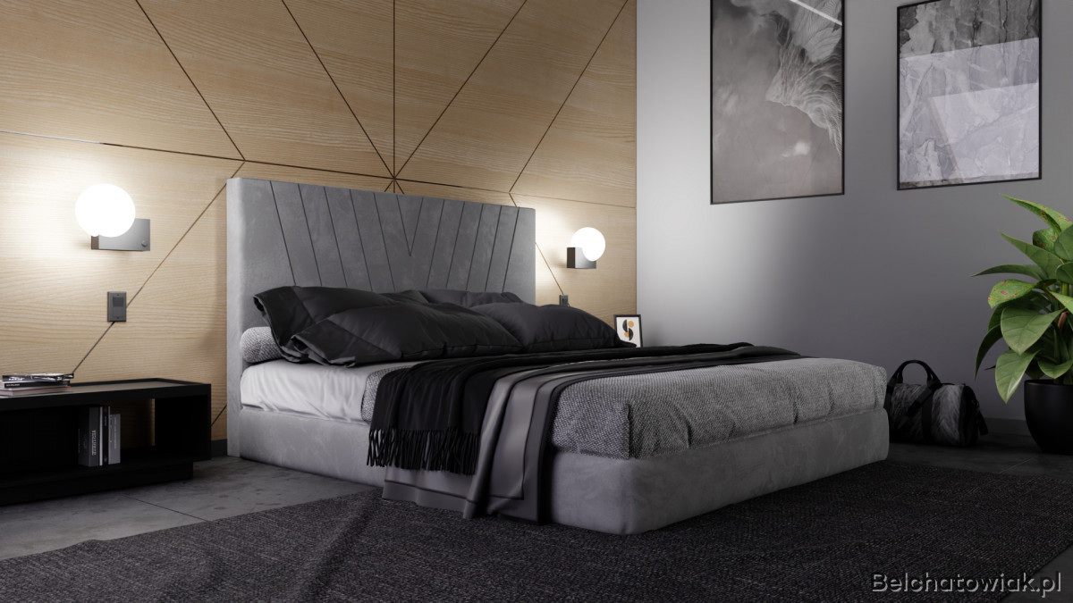 Łóżko ADRA zachwyca eleganckim charakterem i wyjątkowym designem. Wezgłowie tapicerowane we wzór litery V podkreśla nowoczesny styl, a jednocześnie nadaje sypialni przytulnego klimatu.