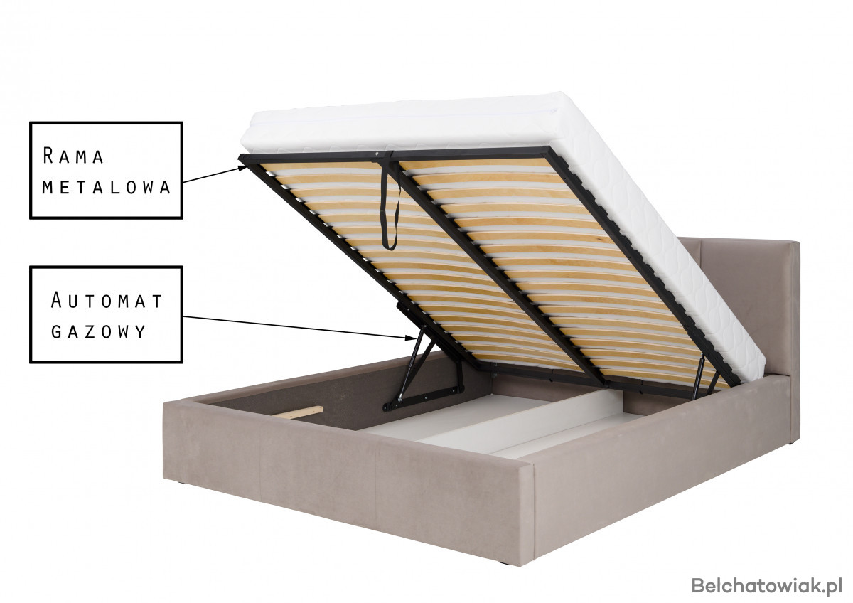 Łóżko zostało wyposażone w stalowy stelaż, który gwarantuje trwałość i stabilność na długie lata.