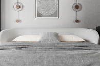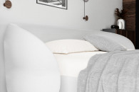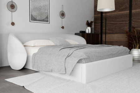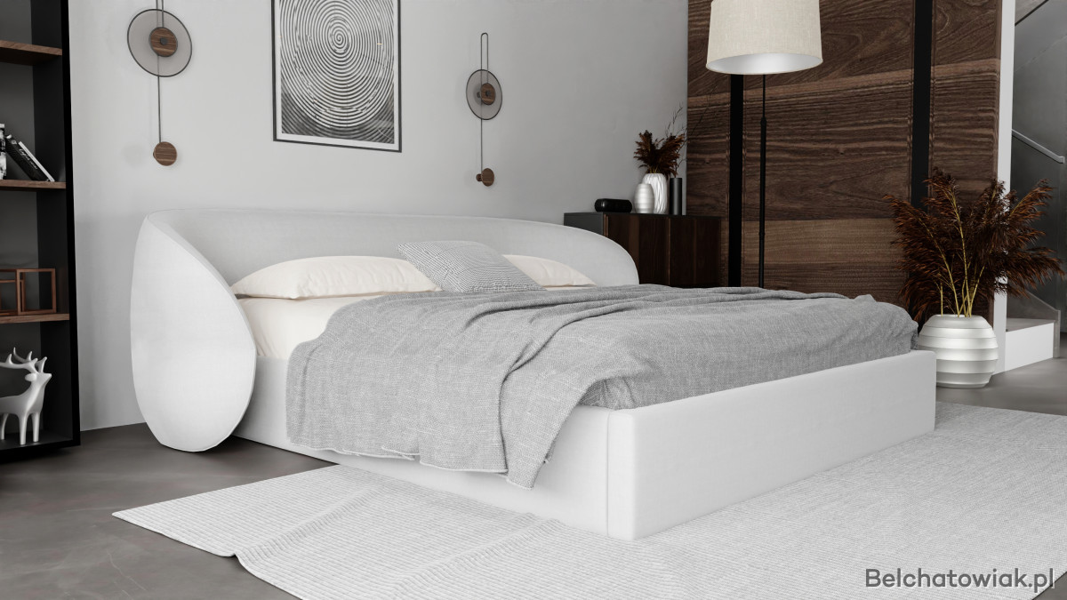 Wyjątkowy zagłówek o ekstrawaganckim charakterze podkreśla indywidualność wnętrza, a solidna konstrukcja z wbudowanym stalowym stelażem i praktycznym pojemnikiem na pościel sprawia, że łóżko jest nie tylko piękne, ale i wygodne w codziennym użytkowaniu