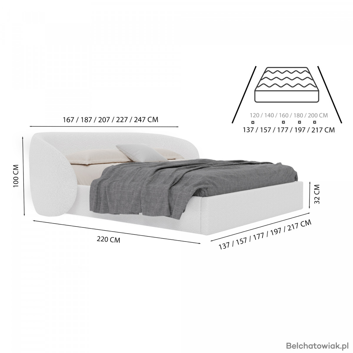 BRAK MATERACA (Możliwość wyboru materaca z kolekcji – dopasowanie komfortu do indywidualnych potrzeb TUTAJ)