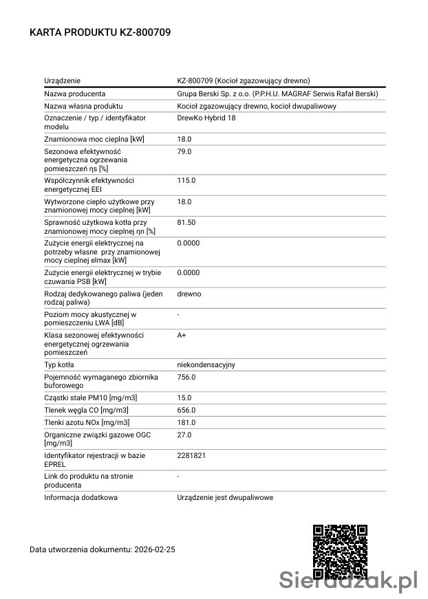 Klasa energetyczna: A+ (pełna zgodność z normą EN 303-5:2021 oraz Ecodesign)