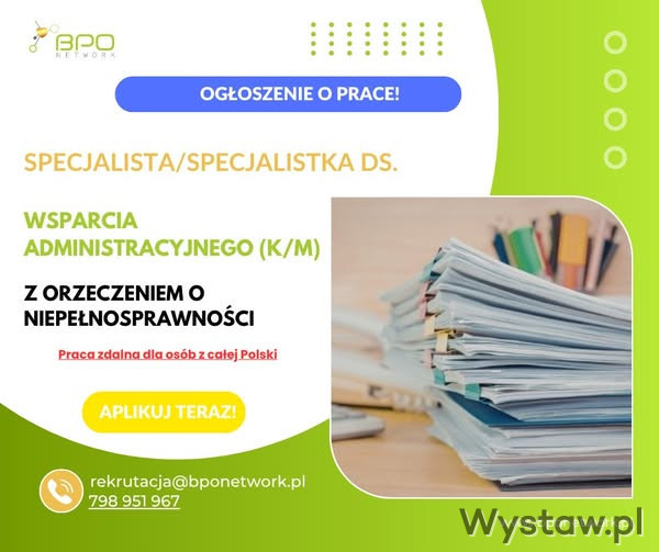 • Praca zdalna dla osób z całej Polski Kontakt w sprawie oferty pracy: Ilona 798 951 967 ikawiecka@bponetwork.pl rekrutacja@bponetwork.pl